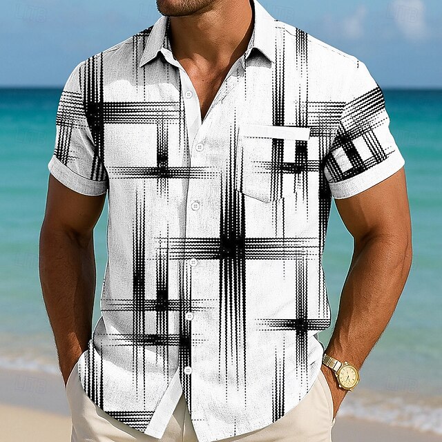 This Men's Geometric Grid / Plaid Shirt Summer Shirt Button Up Shirt Short Sleeve Fashion Casual Vacation Holiday Streetwear Summer Turndown 3D Print Front One Pocket Linen Like Shirt White Pink Blue Gray combines elegant design with practical functionality. Every detail has been carefully considered to ensure you get the best possible experience. The high quality construction means this product will serve you well for years to come.