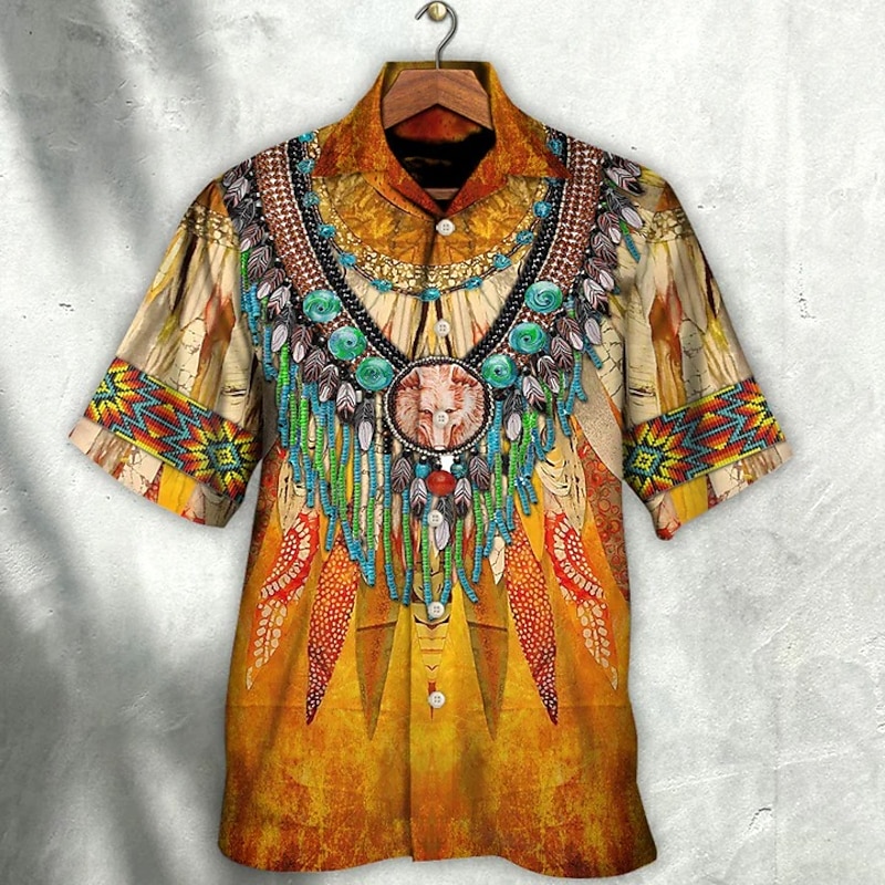 More information about Men's Colorful Hippie Shirt Summer Hawaiian Shirt Aloha Shirt Short Sleeve Shirt Cuban Collar Sports Fashion Streetwear Outdoor Casual Hawaiian Yellow Black / Brown Brown S M L