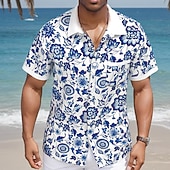 HOT ! Men's Floral Print Flowers Shirt Summer Hawaiian Shirt Button Up Shirt Short Sleeve Hawaiian Resort Vacation Sports Outdoor Beach Wear Summer Spring Turndown Collared Shirts Front One Pocket Blue