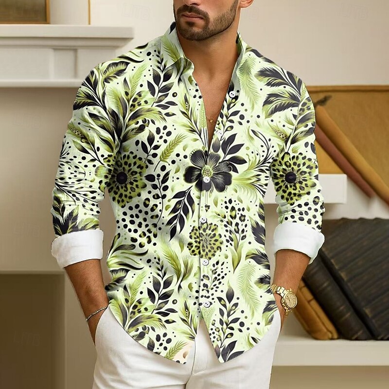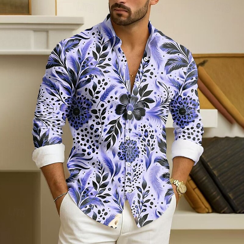 Why Choose Men's Leaf Plants Tropical Flowers Shirt Button Down Shirt Hawaiian Shirt Long Sleeve Hawaiian Outdoor Vacation Holiday Summer Spring Turndown 3D Print Collared Shirts Pink Purple Green Khaki?