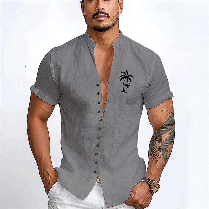 Highlights [Fabric] Crafted from lightweight polyester, this Men's Hawaiian Shirt ensures breathability and comfort during the warm summer months. The micro-elastic material provides a comfortable fit and adds a touch of stretch for ease of movement. [Fit] Featuring a regular fit with short sleeves, this shirt is designed to offer a relaxed and comfortable style, perfect for casual outings or beach days. The standing collar adds a subtle edge to its overall laid-back vibe. [Design Highlights] The shirt boasts a vibrant print of palm trees and tropical plants, embodying the spirit of summer and vacations. The button-down front brings a classic touch to its casual design, while the small embroidered palm tree on the chest adds a stylish accent. [Occasions] Ideal for daily wear, vacations, and holiday gatherings, this Hawaiian shirt is versatile enough for any casual or leisurely occasion. Its easygoing style makes it a suitable choice for both resort holidays and everyday activities. [Size Range] Available in sizes S to 3XL, this shirt caters to a wide range of body types, ensuring a comfortable fit for every individual. The inclusion of a broad size range allows for tailored comfort whether you're enjoying a relaxed holiday or a busy day out.