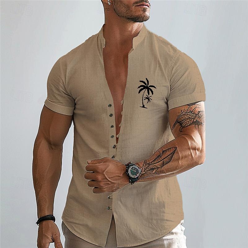 Men's Palm Tree Tropical Plants Summer Hawaiian Shirt Aloha Shirt Printed Shirts Short Sleeves Shirt Standing Collar Hawaiian Resort Vacation Holiday Daily Wear Blue Green Khaki S M L 1