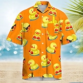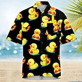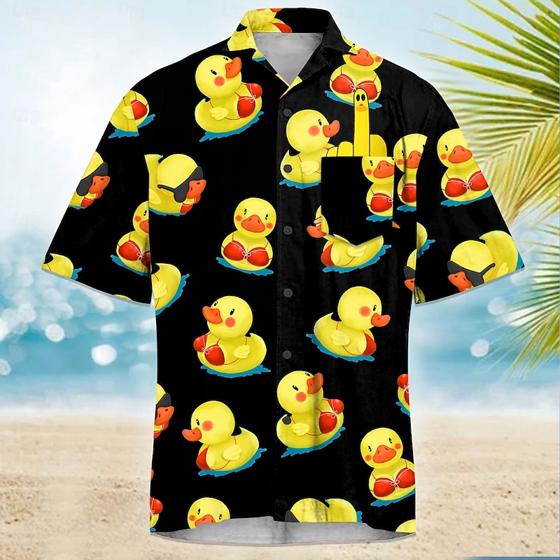 Why Choose Men's Little Yellow Duck Funny Cuban Collar Shirt Summer Hawaiian Shirt Aloha Shirt Short Sleeve Hawaiian Vacation Holiday Beach Wear Summer Spring Camp Collar Shirt 3D Print Front One Pocket Black?
