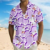 Why Choose Men's Geometric Funny Duck Shirt Summer Hawaiian Shirt Button Up Shirt Short Sleeve Hawaiian Vacation Holiday Beach Wear Summer Turndown 3D Print Front One Pocket Linen Like Shirt Blue Purple Green?