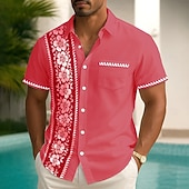 More information about Men's Floral Print Tropical Flowers Summer Hawaiian Shirt Button Up Shirt Aloha Shirt Short Sleeve Hawaiian Holiday Beach Wear Summer Spring Turndown 3D Print Collared Shirts Front One Pocket Red
