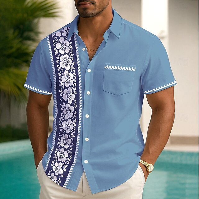 HOT ! Men's Floral Print Tropical Flowers Summer Hawaiian Shirt Button Up Shirt Aloha Shirt Short Sleeve Hawaiian Holiday Beach Wear Summer Spring Turndown 3D Print Collared Shirts Front One Pocket Red
