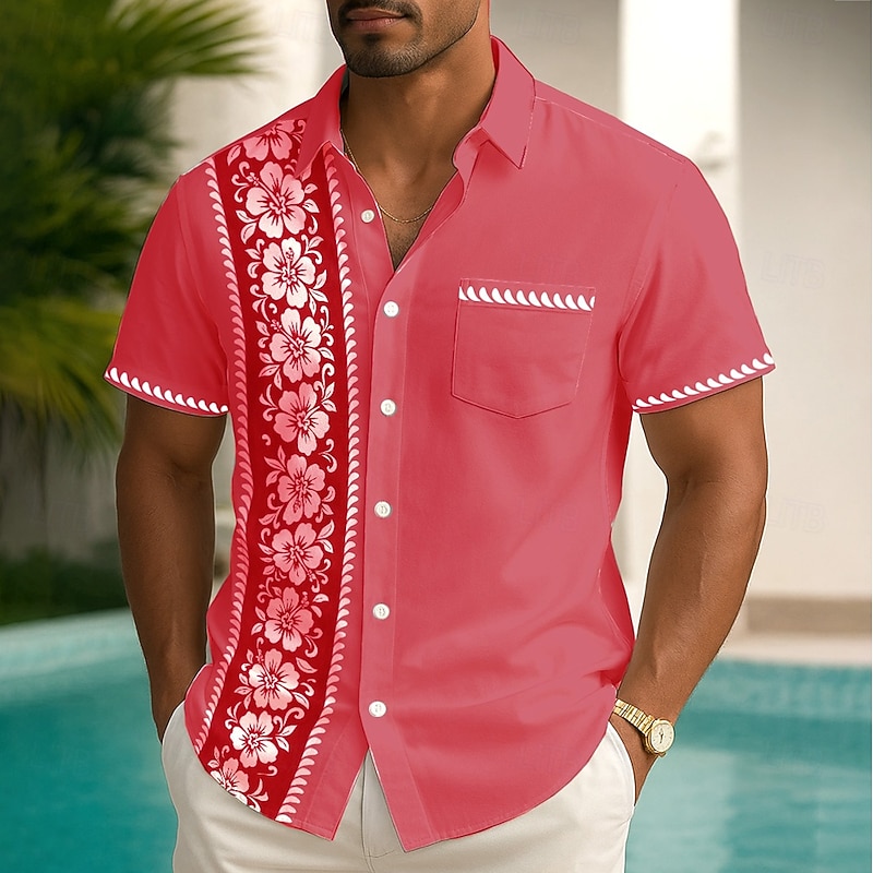 Men's Floral Print Tropical Flowers Summer Hawaiian Shirt Button Up Shirt Aloha Shirt Short Sleeve Hawaiian Holiday Beach Wear Summer Spring Turndown 3D Print Collared Shirts Front One Pocket Red 8