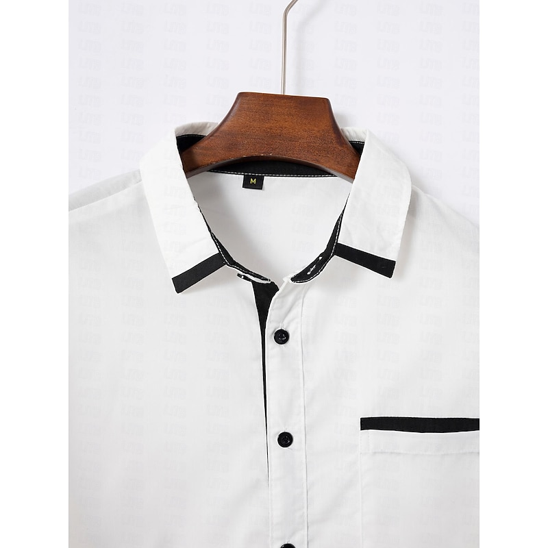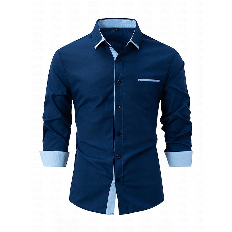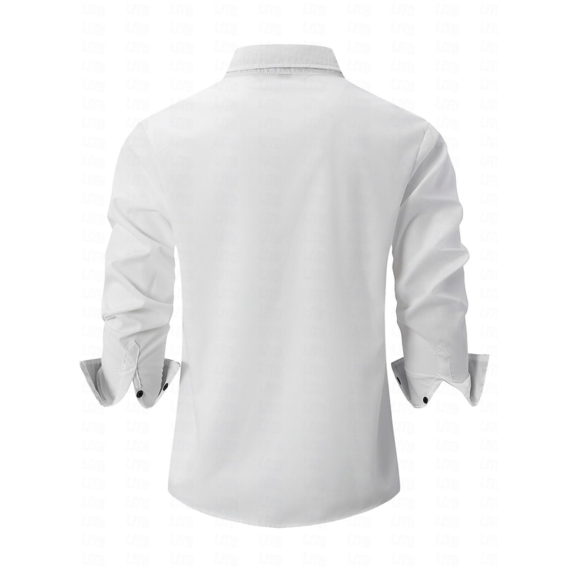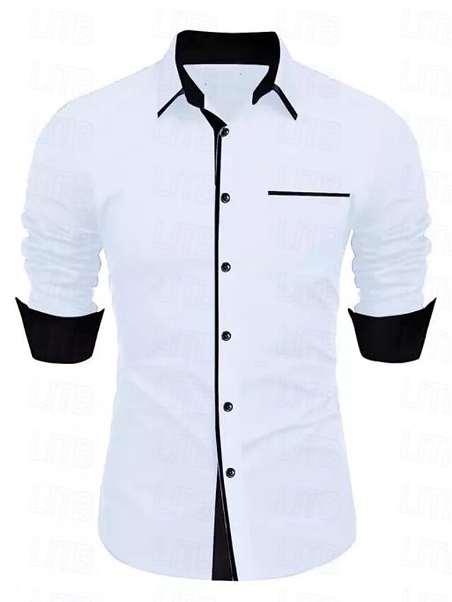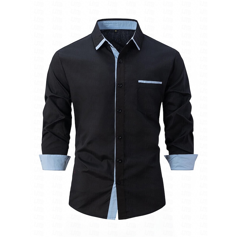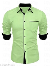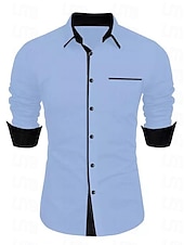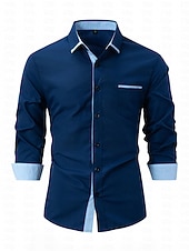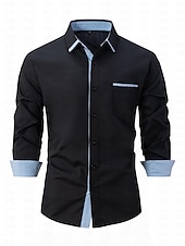 More information about Men's Dress Shirt Casual Shirt Black White Light Green Burgundy Blue Long Sleeve Color Block Solid / Plain Color Turndown Wedding Vacation Button-Down Clothing Apparel Cotton Fashion Leisure