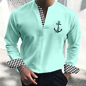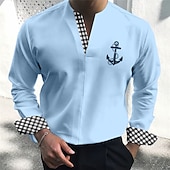 Highlights [Fabric] Crafted from high-quality polyester, this men's long-sleeve shirt offers durability and a soft, comfortable feel, perfect for the summer and fall seasons. The fabric ensures easy breathability, making it ideal for all-day wear. [Fit] The shirt features a regular fit that complements a wide range of body types, providing a balanced and comfortable silhouette. It is designed to enhance the wearer's physique with a modern and streamlined look. [Design Highlights] This shirt boasts a contemporary V-neck and a unique anchor print that adds a nautical flair to the classic plaid/check pattern. The inner collars and cuffs feature a contrasting black and white checkered design, adding a modern touch to the shirt's overall aesthetic. [Occasions] Suitable for a variety of occasions, this versatile shirt is perfect for daily casual wear, outdoor activities, and stylish streetwear looks. It effortlessly transitions from relaxed daytime wear to more fashionable evening events. [Size Range] Available in a wide range of sizes from S to 3XL, this shirt caters to diverse body shapes and ensures a great fit for adults of all sizes.