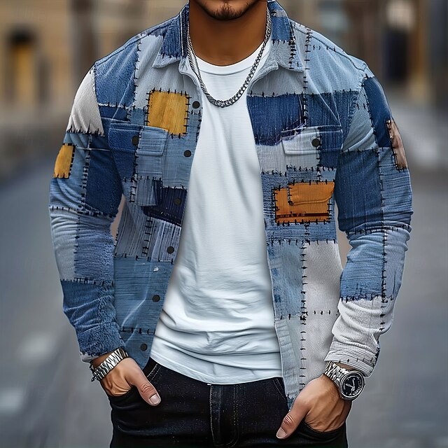 This Men's Color Block Patchwork Denim-like Corduroy Shirt Shirt Jacket Overshirt Long Sleeve Vintage Retro Outdoor Dailywear Fall Winter Turndown Button-Down Warm Jacket with Flap Pockets Blue Purple combines elegant design with practical functionality. Every detail has been carefully considered to ensure you get the best possible experience. The high quality construction means this product will serve you well for years to come.