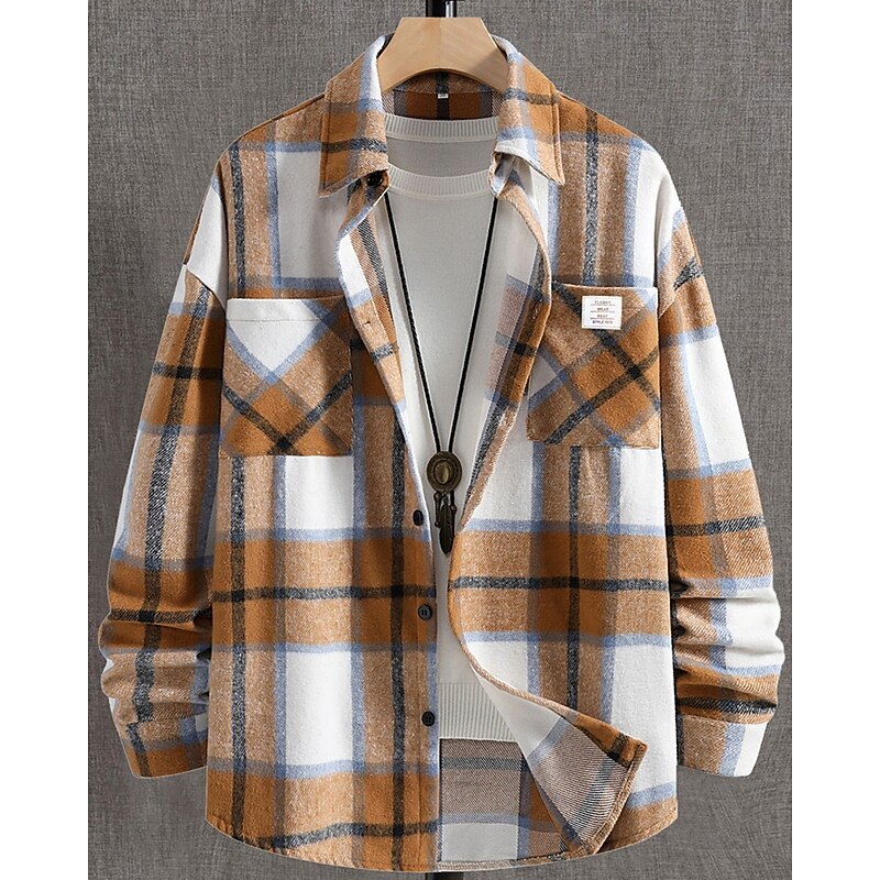 This Men's Shacket Shirt Jacket Winter Jacket Plaid Vacation Daily Wear Blue Brown Khaki Coffee Long Sleeve Lapel Fall Winter Clothing Apparel Pocket combines elegant design with practical functionality. Every detail has been carefully considered to ensure you get the best possible experience. The high quality construction means this product will serve you well for years to come.
