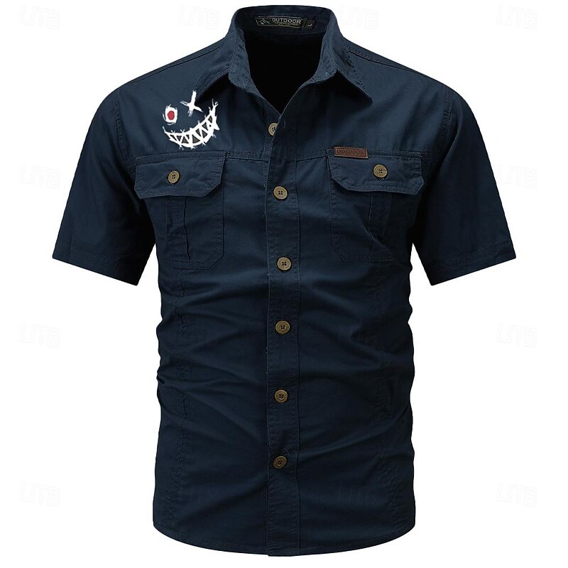 More information about Men's Smile Face Work Shirt Western Shirt Cargo Shirt Short Sleeve Casual Tactical Going out Summer Spring Autumn Turndown Buttons Print Black Green Dark Blue Beige Gray