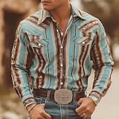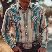 More information about Men's Geometric Striped Color-blocking Shirt Western Shirt Cowboy Shirt Long Sleeve Vintage Retro Outdoor Daily WorkWear Fall & Winter Turndown 3D Print Front Two Pockets Button Up Shirts Blue Sky