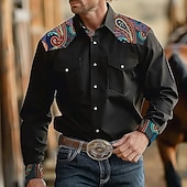 Why Choose Men's Paisley Western Shirt Long Sleeve Western Sports Outdoor Spring Fall Turndown Button Up 2 Pockets Black?