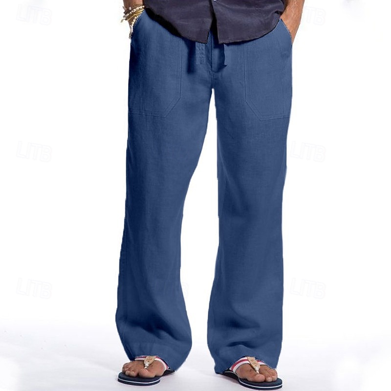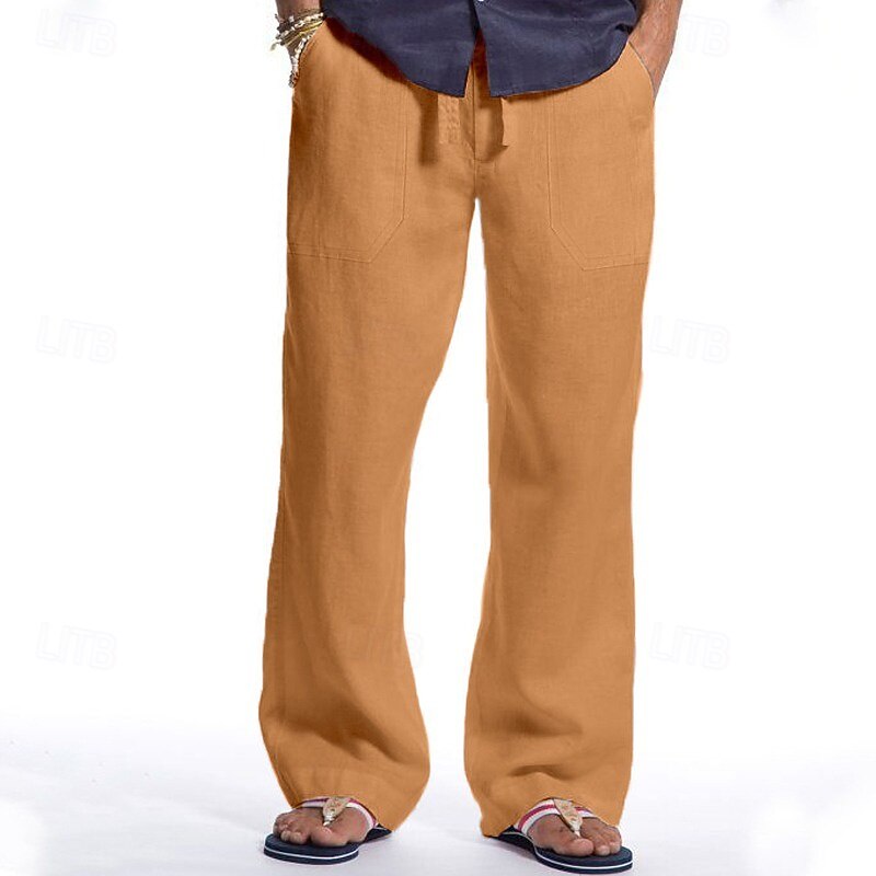 Highlights [Fabric] : Crafted from 100% cotton, these men's trousers are lightweight and breathable, ideal for keeping cool during spring and summer. The high-quality fabric ensures durability and comfort, making them perfect for outdoor adventures or daily wear. [Fit and Style] : Featuring a regular fit with a laid-back silhouette, these trousers offer a relaxed and casual yet fashionable style. The straight leg design provides freedom of movement, while the mid-waist ensures a comfortable and flattering fit. [Design Highlights] : These trousers come with a drawstring and elastic waistband, enhancing their adaptability and easy wearability. The plain pattern lends a classic and versatile look, while subtle side pockets add practical functionality for carrying essentials. [Occasions] : Ideal for daily outings, casual gatherings, and outdoor adventures, these trousers are a great choice for those who seek comfort without sacrificing style. Pair them with a simple tee or a casual button-up shirt for a chic and effortless look. [Size Range] : Available in a wide range of sizes, including S, M, L, XL, XXL, and 3XL, these trousers cater to various body types, ensuring a suitable fit for everyone looking to enhance their summer wardrobe with versatile fashion pieces.