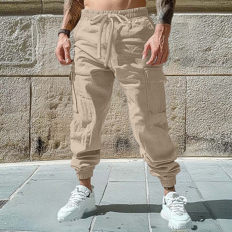 More information about Men's Cargo Pants Linen Pants Trousers Summer Pants Jogger Pants Elastic Waist Drawstring Plain Comfort Breathable Full Length Outdoor Casual Daily Vacation Fashion Black White Inelastic