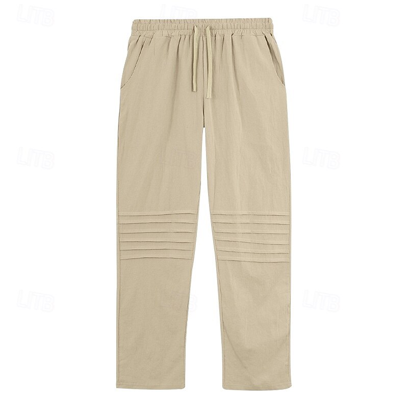 More information about Men's Linen Pants Trousers Summer Pants Baggy Pants Elastic Waist Pleats Straight Leg Plain Comfort Breathable Full Length Outdoor Daily Holiday Vacation Fashion Black White Inelastic