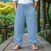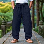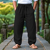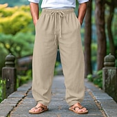 HOT ! Men's Linen Pants Trousers Summer Pants Beach Pants Drawstring Elastic Waist Pleats Plain Comfort Breathable Full Length Outdoor Casual Daily Vacation Fashion Black White Inelastic