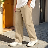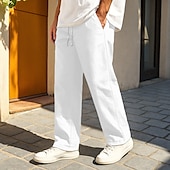More information about Men's Linen Pants Trousers Summer Pants Baggy Pants Beach Pants Drawstring Elastic Waist Plain Comfort Soft Full Length Daily Beach Vacation Fashion Black White