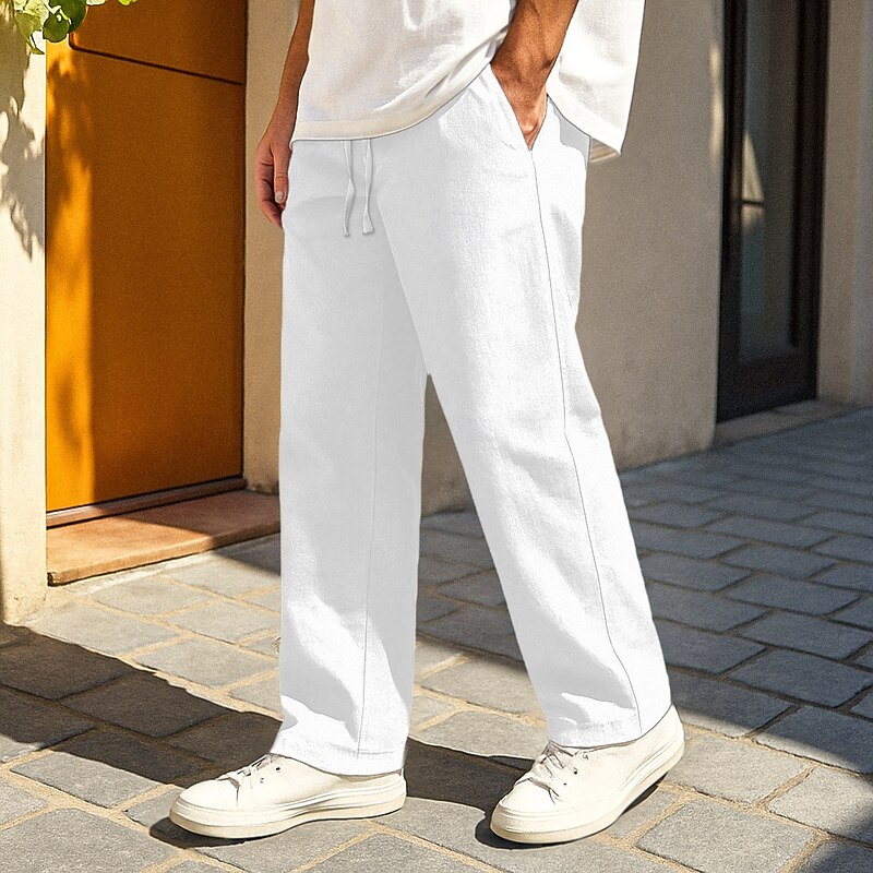 HOT ! Men's Linen Pants Trousers Summer Pants Baggy Pants Beach Pants Drawstring Elastic Waist Plain Comfort Soft Full Length Daily Beach Vacation Fashion Black White