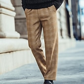 More information about Men's Geometric Grid / Plaid Trousers Dress Pants Suit Pants Mid Waist Business Casual Formal Dailywear Regular Fit Flat-Front Straight Leg Pants with Pockets Summer Spring Fall 3D Print khaki Dark