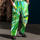 Why Choose Men's Geometric Optical Illusion Laser Dress Pants Trousers Suit Pants Mid Waist Casual Holiday Streetwear Relaxed Fit Flat Front Dress Pants with Side Pockets Spring Fall 3D Print Blue Green?
