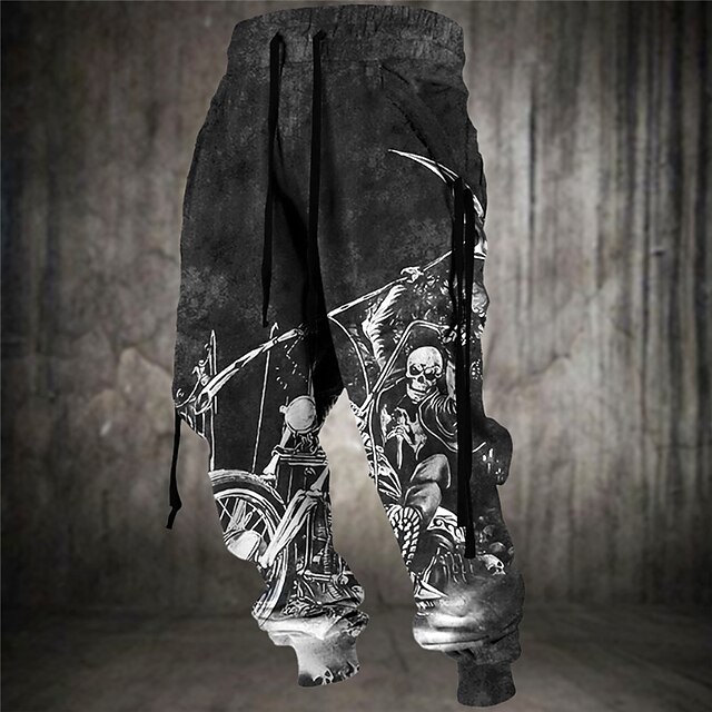 Why Choose Skull Punk Gothic Men's 3D Print Sweatpants Joggers Pants Trousers Outdoor Street Casual Daily Polyester Black Blue Brown S M L Mid Waist Elasticity Pants?