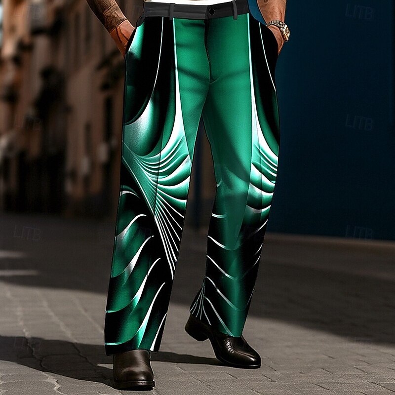 Men's Geometric Gradient Color Abstract Art Trousers Dress Pants Suit Pants Mid Waist Casual Holiday Streetwear Relaxed Fit Flat Front Dress Pants with Side Pockets Spring Fall 3D Print Black Blue 10