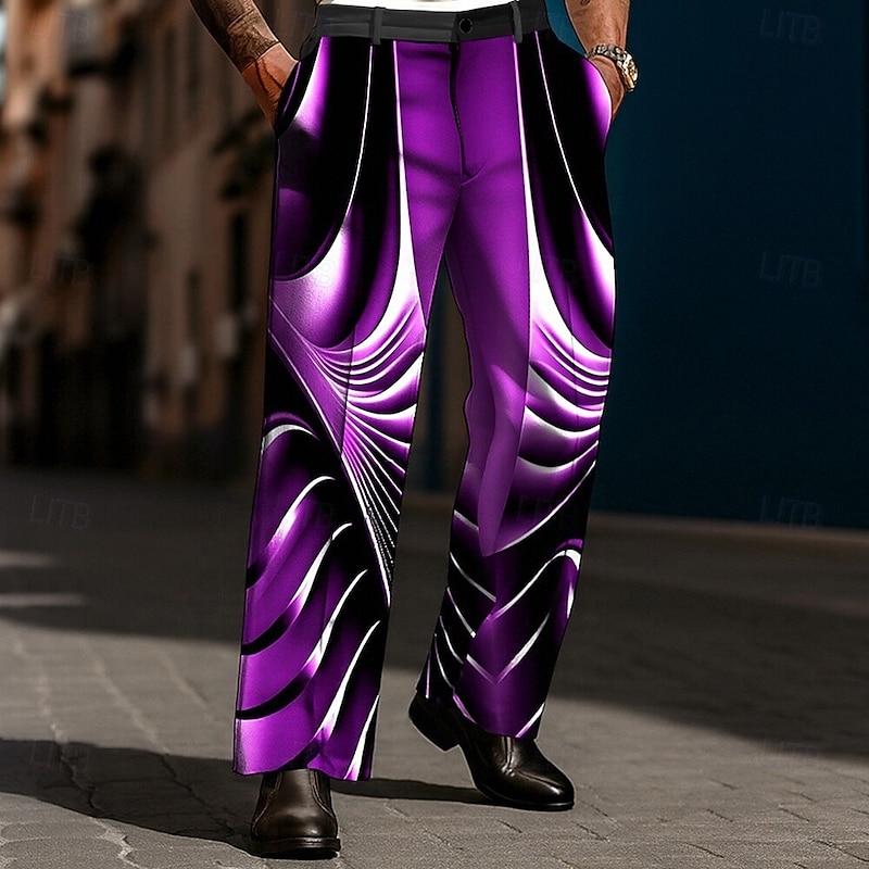 HOT ! Men's Geometric Gradient Color Abstract Art Trousers Dress Pants Suit Pants Mid Waist Casual Holiday Streetwear Relaxed Fit Flat Front Dress Pants with Side Pockets Spring Fall 3D Print Black Blue