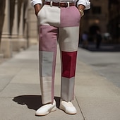 Men's Color Block Patchwork Dress Pants Trousers Suit Pants Mid Waist Vintage Retro Outdoor Vacation Regular Fit Flat-Front Straight Leg Pants with Pockets Summer Spring Fall 3D Print Pink Wine khaki 3