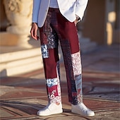 More information about Men's Color Block Patchwork Dress Pants Trousers Suit Pants Mid Waist Vintage Retro Outdoor Vacation Regular Fit Flat-Front Straight Leg Pants with Pockets Summer Spring Fall 3D Print Pink Wine khaki