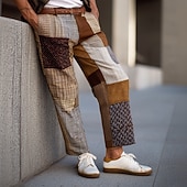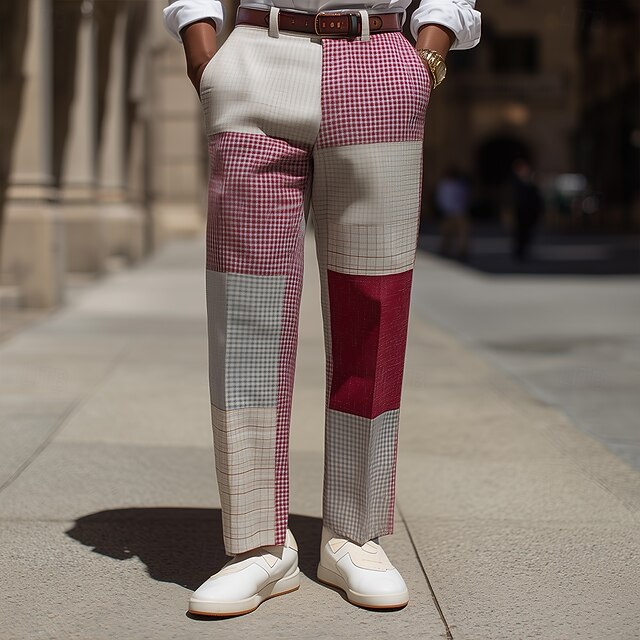 Men's Color Block Patchwork Dress Pants Trousers Suit Pants Mid Waist Vintage Retro Outdoor Vacation Regular Fit Flat-Front Straight Leg Pants with Pockets Summer Spring Fall 3D Print Pink Wine khaki 9