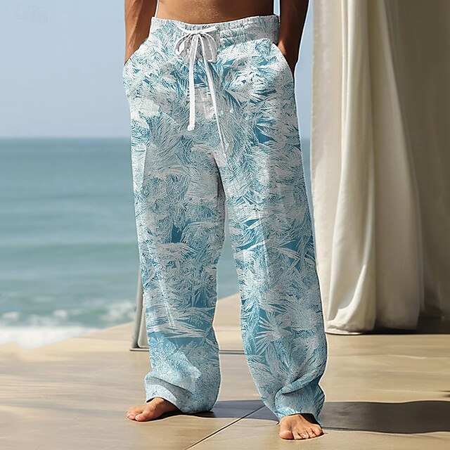 More information about Men's Coconut Tree Palm Leaf Tropical Plants Trousers Baggy Pants Casual Pants Mid Waist Hawaiian Casual Vacation Holiday Beach Wear Drawstring Elastic Waist Wide Leg Summer Spring 3D Print Black