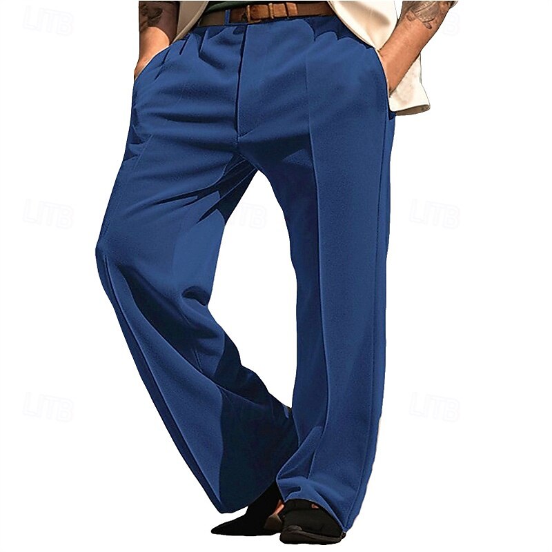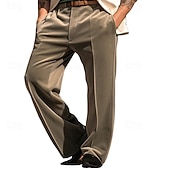 Men's Dress Pants Trousers Chinos Pocket Buttons Plain Comfort Formal Party Work Fashion Classic Style ArmyGreen Wine Micro-elastic 12