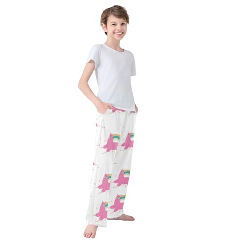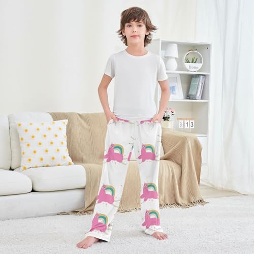 HOT ! Llama Rainbow Boys Pants Boys Athletic Pants Long Pant for Boywith Pockets Wide-Leg Size 6-14Y