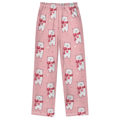HOT ! Boy's Pants Polar Bear Red Heart Lover Scarf Jogger Pants Elastic Waist Long Bottoms Trousers with Pockets 6-14 Y