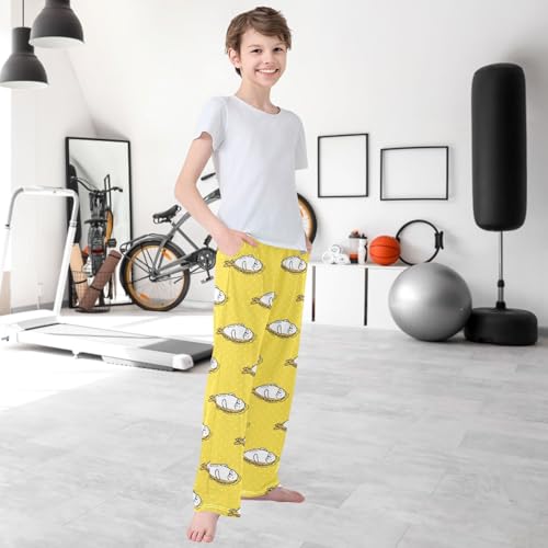 Boy's Pants Fur Seal Fish Yellow Dot Jogger Pants Elastic Waist Long Bottoms Trousers with Pockets 6-14 Years