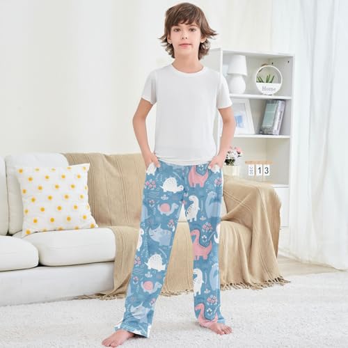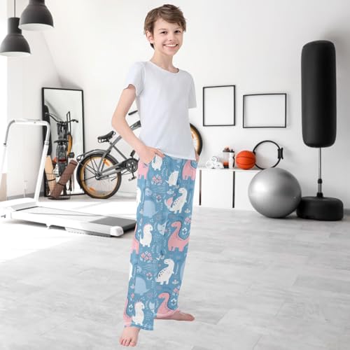 Boy's Pants Cute Dinosaur Flower Jogger Pants Elastic Waist Long Bottoms Trousers with Pockets 6-14 Years 7