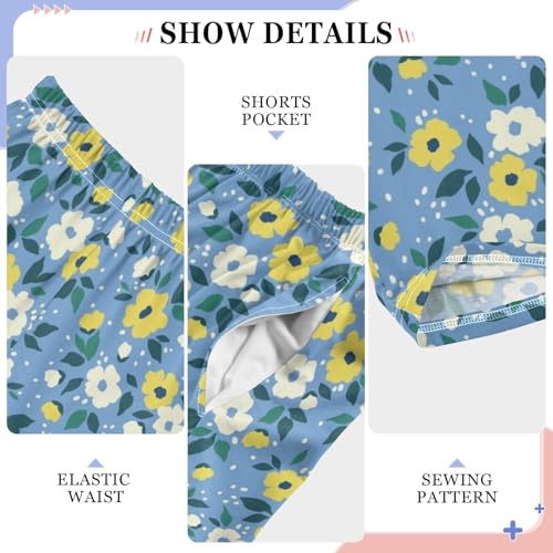 Boys' Pants Cute Floral Yellow White Long Bottoms Jogger Pants Elastic Waist Trousers with Pockets S-XL 5