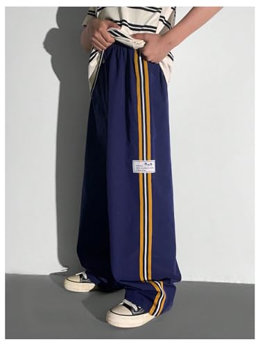Why Choose Verdusa Boy's Side Striped Pants Drawstring Waist Straight Leg Letter Patched Baggy Trousers?