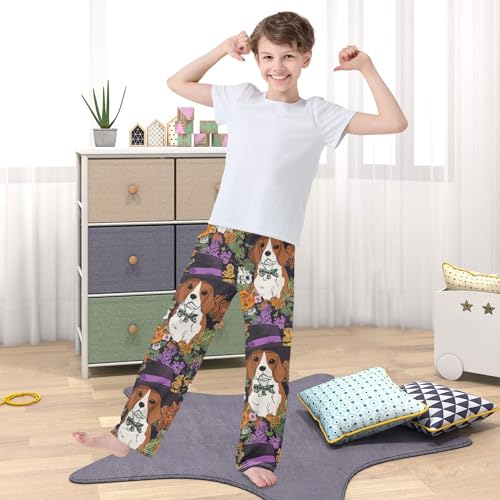 ZZXXB Halloween Beagle Flowers Boys Long Pants Soft Trousers Elastic Waist Kids Lounge Bottoms with Pockets S-XL 6