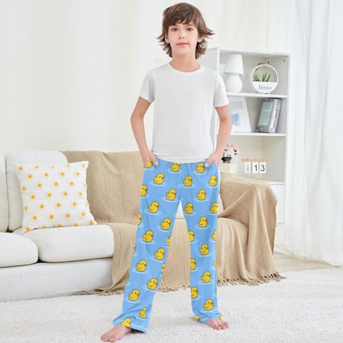 Boy's Pants Cartoon Cute Duck Blue Water Jogger Pants Elastic Waist Long Bottoms Trousers with Pockets 6-14 Years 6