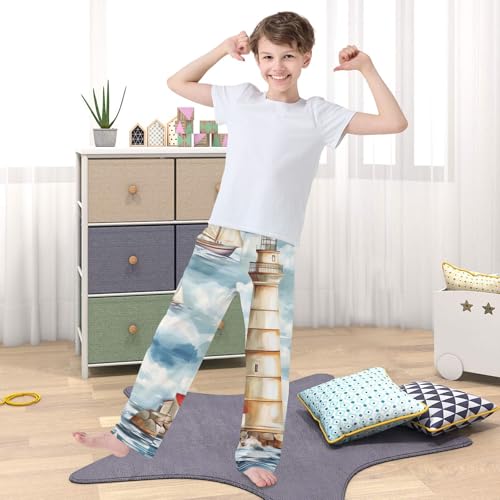 ZZXXB Lighthouse and Sailboat Boys Long Pants Soft Trousers Elastic Waist Kids Lounge Bottoms with Pockets S-XL