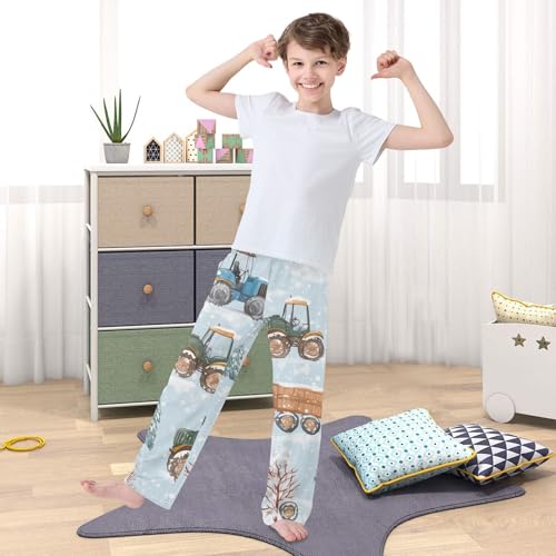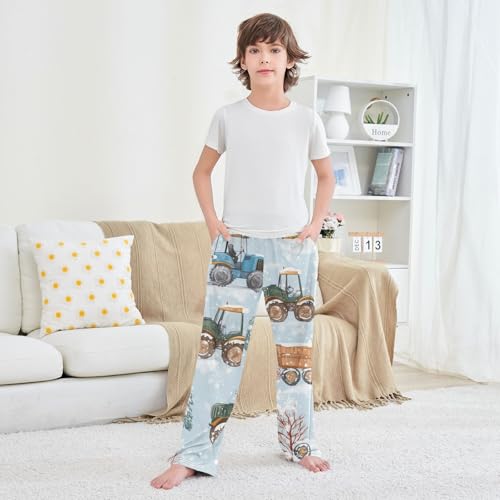 ZZXXB Winter Tractor Trees Boys Long Pants Soft Trousers Elastic Waist Kids Lounge Bottoms with Pockets S-XL