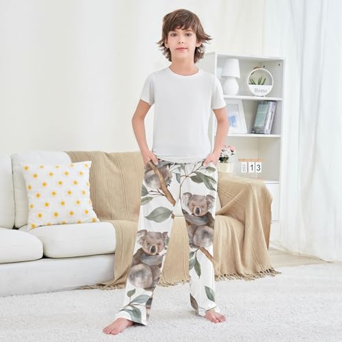 Cute Koala Leaves Boys Long Pants Soft Trousers Elastic Waist Kids Lounge Bottoms with Pockets S-XL