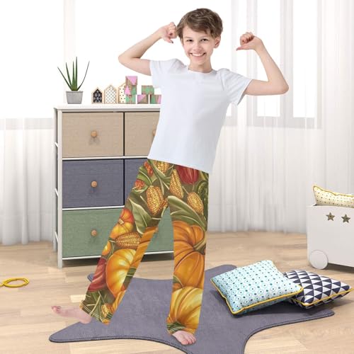 Pumpkin Corn Boys Long Pants Soft Trousers Elastic Waist Kids Lounge Bottoms with Pockets S-XL 6