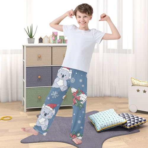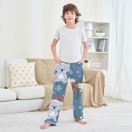 Xmas Koala Snowflake Boys Long Pants Soft Trousers Elastic Waist Kids Lounge Bottoms with Pockets S-XL