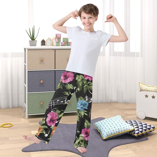 ZZXXB Music Note Colorful Flowers Boys Long Pants Soft Trousers Elastic Waist Kids Lounge Bottoms with Pockets S-XL 1