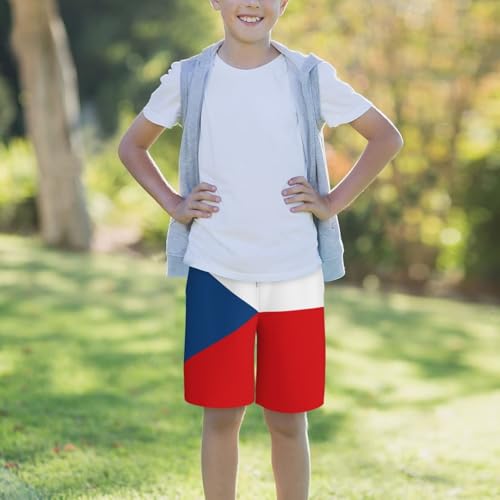 Flag of The Czech Republic Small Youth Beach Pants, Soft and Breathable, with Drawstring Waist, Suitable for Sports and Leisure. Black 1