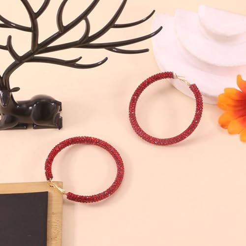 Sparkly Hoop Earrings for Women Exaggerated Rainbow Rhinestone Hoops Earrings Fashion Glitter Crystal Hoop Earring Large Hoops Earring Prom Jewelry Gifts 6